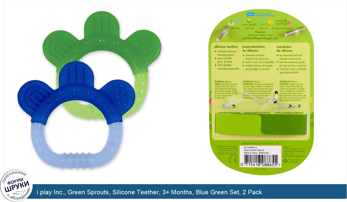 Друзья, если у вас есть отзыв/дополнение/комментарий/вопрос относительно i play Inc., Green Sprouts, Silicone Teether, 3+ Months, Blue Green Set, 2 Pack - напишите его ответом в эту тему (это будет полезно всему сообществу в целом и вам в отдельности).