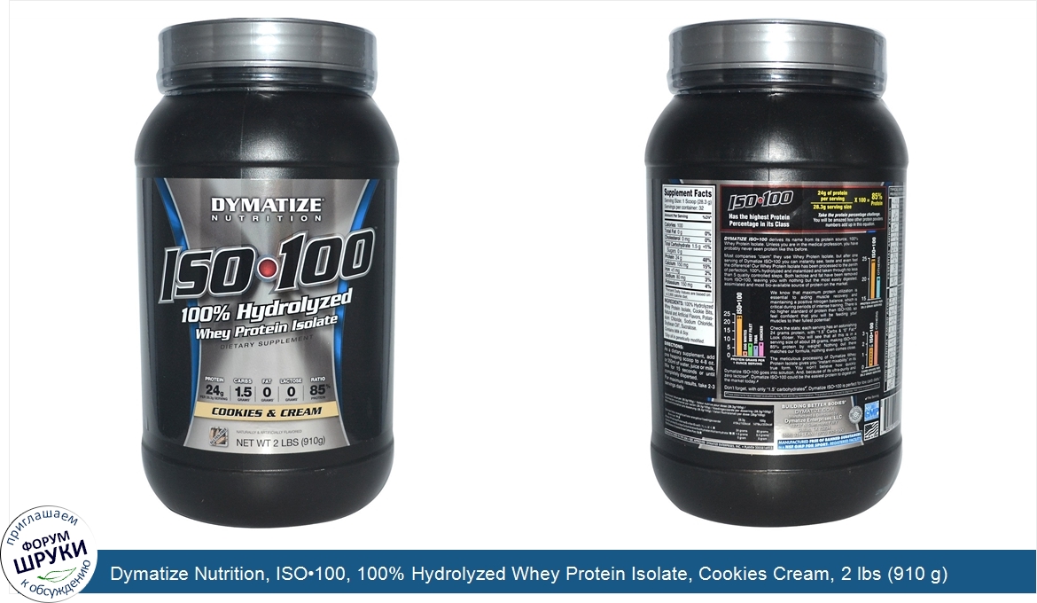 Друзья, если у вас есть отзыв/дополнение/комментарий/вопрос относительно Dymatize Nutrition, ISO•100, 100% Hydrolyzed Whey Protein Isolate, Cookies Cream, 2 lbs (910 g) - напишите его ответом в эту тему (это будет полезно всему сообществу в целом и вам в отдельности).
