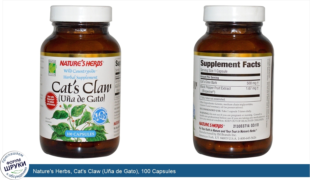 Друзья, если у вас есть отзыв/дополнение/комментарий/вопрос относительно Nature's Herbs, Cat's Claw (Uña de Gato), 100 Capsules - напишите его ответом в эту тему (это будет полезно всему сообществу в целом и вам в отдельности).