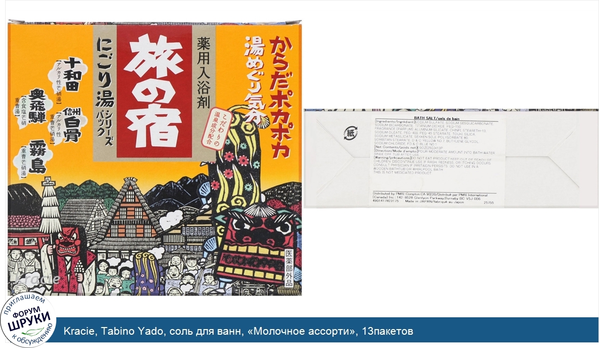 Kracie, Tabino Yado, соль для ванн, «Молочное ассорти», 13пакетов