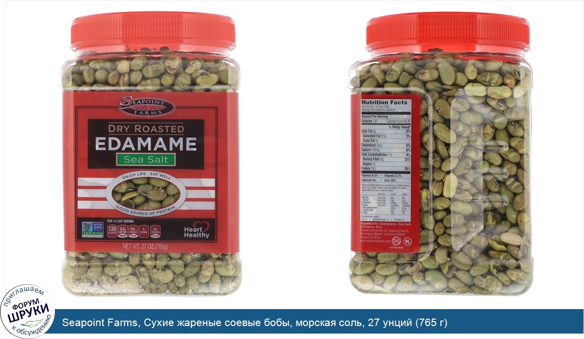 [DESCRIPT]Enjoy Life.Eat Well. Good Source of Protein. Non GMO Project Verified. Heart Healthy. Gluten Free. Kosher. Per 1/3 cup serving. 130 Calories. 0.5 g Sat Fat 3% DV. 150 mg Sodium 6% DV. 1 g Sugars. 13 g Protein 26% DV. Seapoint Farms Dry Roasted Edamame (ed-ah-mah-may) is healthy and delicious and packed with plant based protein, fiber and the power of soy. Our Dry Roasted Edamame contains all the essential amino acids, is naturally cholesterol free and contains no trans fat. These nutty and crunchy roasted green gems are great as a healthy snack, salad topper or just add them to your yogurt or favorite trail mix. Seapoint Farms believes that you can enjoy snacking without sacrificing taste or nutrition. Enjoy! Diets low in saturated fat and cholesterol, and as low as possible in trans fat, may reduce the risk of heart disease. So why not enjoy Seapoint Farms Dry Roasted Edamame as part of your daily snacking and do your heart a favor![/DESCRIPT]... (описание дополняется)