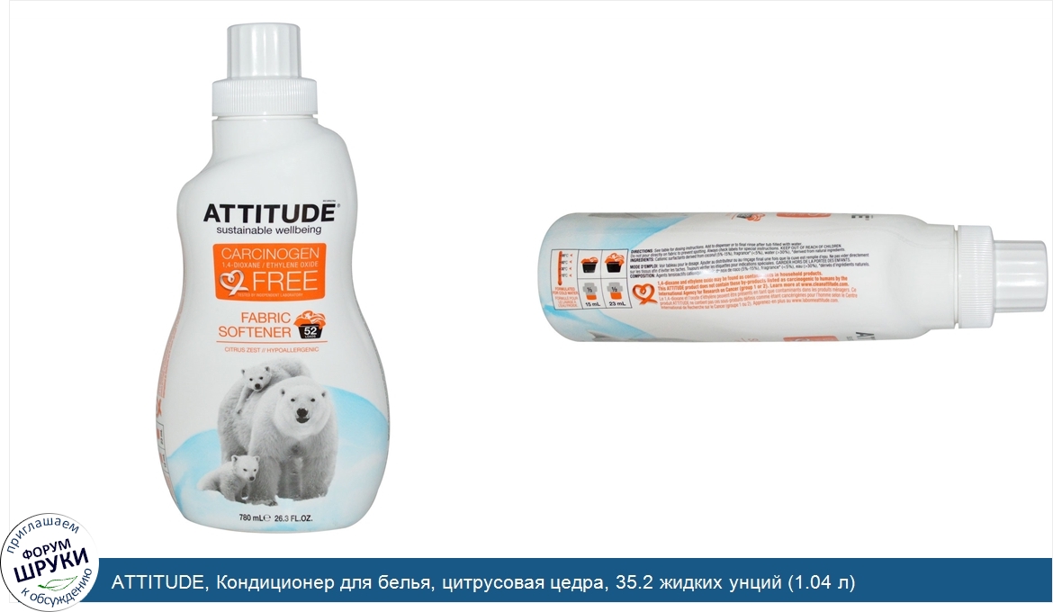 Друзья, если у вас есть отзыв/дополнение/комментарий/вопрос относительно ATTITUDE, Кондиционер для белья, цитрусовая цедра, 35.2 жидких унций (1.04 л) - напишите его ответом в эту тему (это будет полезно всему сообществу в целом и вам в отдельности).