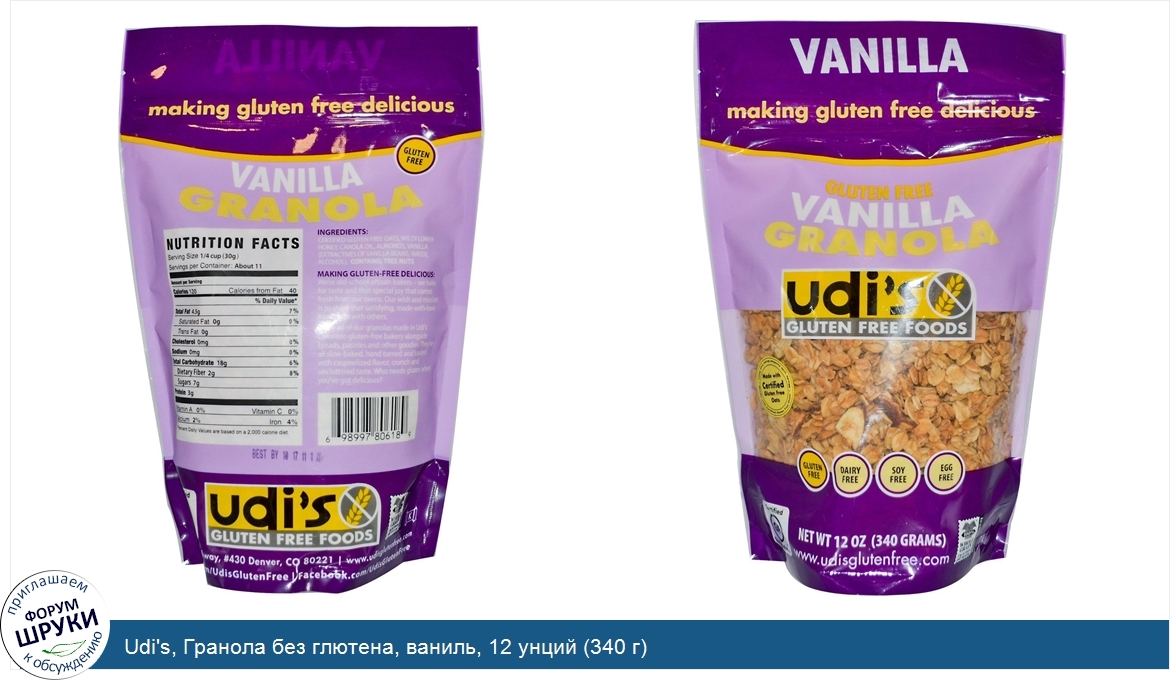 Udi's, Гранола без глютена, ваниль, 12 унций (340 г)