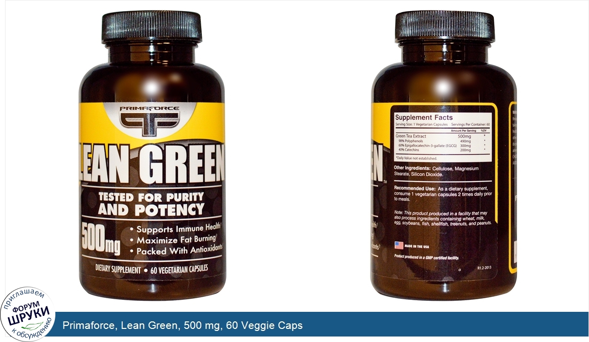 ru Primaforce, Lean Green, 500 mg, 60 Veggie Caps