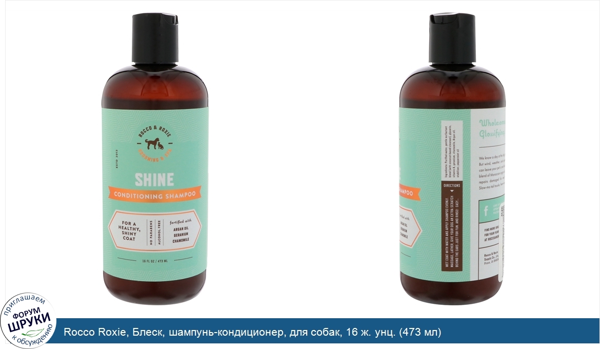 Rocco Roxie, Блеск, шампунь-кондиционер, для собак, 16 ж. унц. (473 мл)