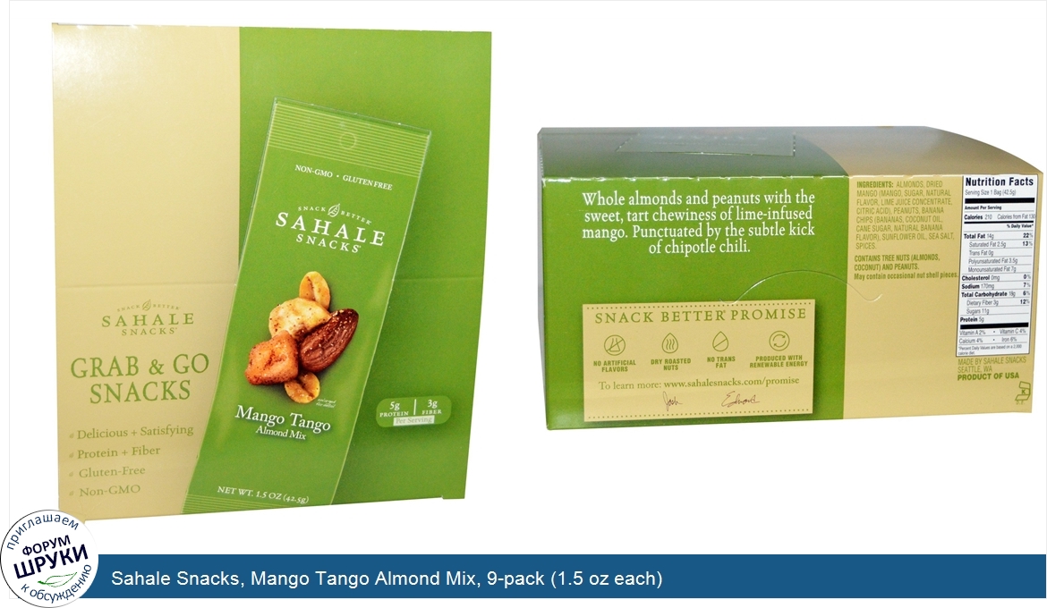 Друзья, если у вас есть отзыв/дополнение/комментарий/вопрос относительно Sahale Snacks, Mango Tango Almond Mix, 9-pack (1.5 oz each) - напишите его ответом в эту тему (это будет полезно всему сообществу в целом и вам в отдельности).
