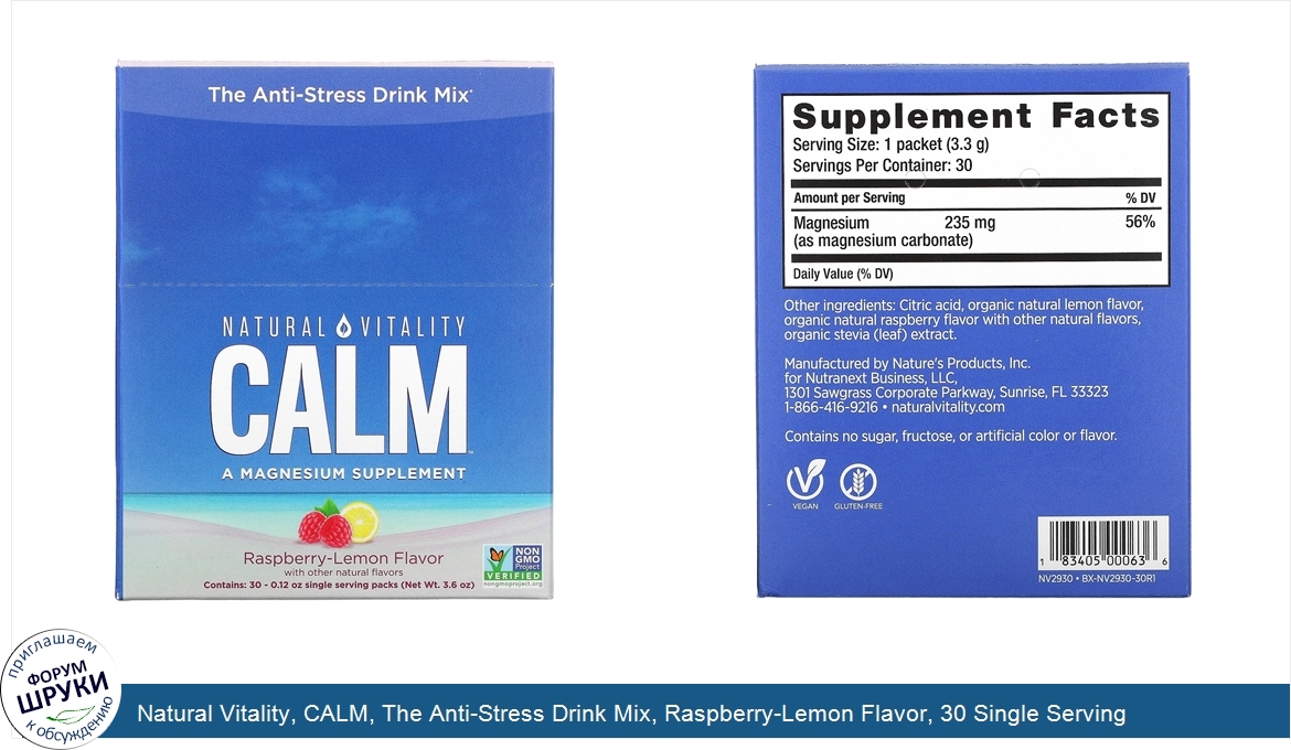 Друзья, если у вас есть отзыв/дополнение/комментарий/вопрос относительно Natural Vitality, CALM, The Anti-Stress Drink Mix, Raspberry-Lemon Flavor, 30 Single Serving Packs, 0.12 oz (3.3 g) - напишите его ответом в эту тему (это будет полезно всему сообществу в целом и вам в отдельности).