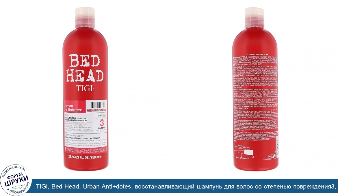 Друзья, если у вас есть отзыв/дополнение/комментарий/вопрос относительно TIGI, Bed Head, Urban Anti+dotes, восстанавливающий шампунь для волос со степенью повреждения3, 750мл (25,36жидк.унции) - напишите его ответом в эту тему (это будет полезно всему сообществу в целом и вам в отдельности).