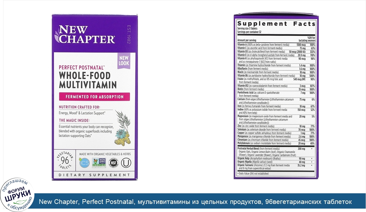Друзья, если у вас есть отзыв/дополнение/комментарий/вопрос относительно New Chapter, Perfect Postnatal, мультивитамины из цельных продуктов, 96вегетарианских таблеток - напишите его ответом в эту тему (это будет полезно всему сообществу в целом и вам в отдельности).