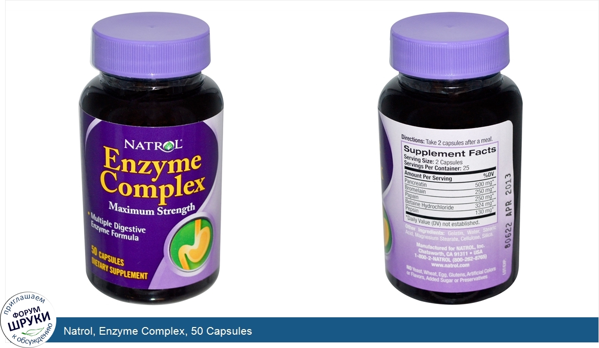 Natrol, Enzyme Complex, 50 Capsules