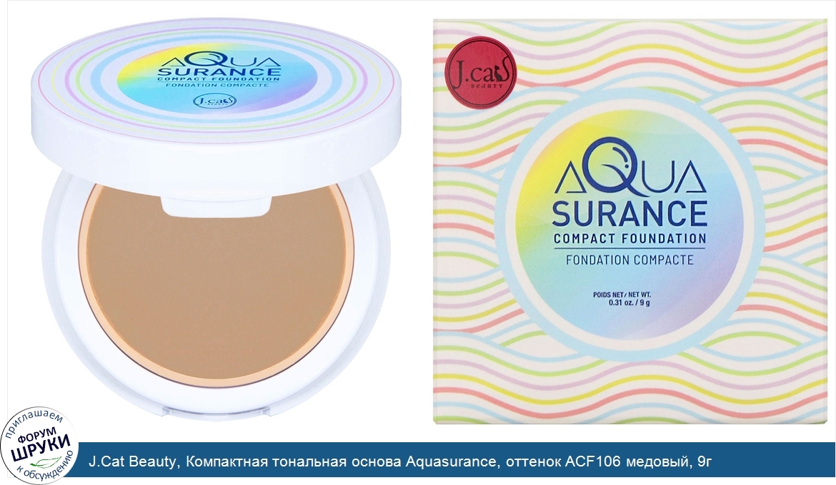 J.Cat Beauty, Компактная тональная основа Aquasurance, оттенок ACF106 медовый, 9г