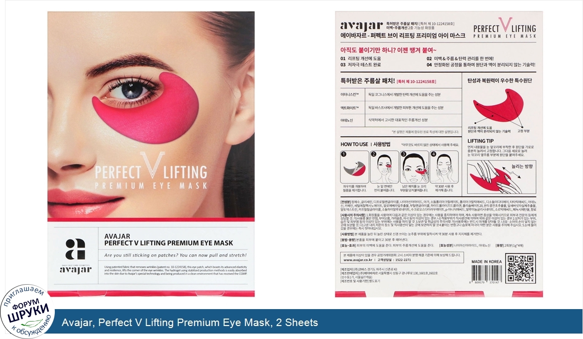 Avajar, Perfect V Lifting Premium Eye Mask, 2 Sheets