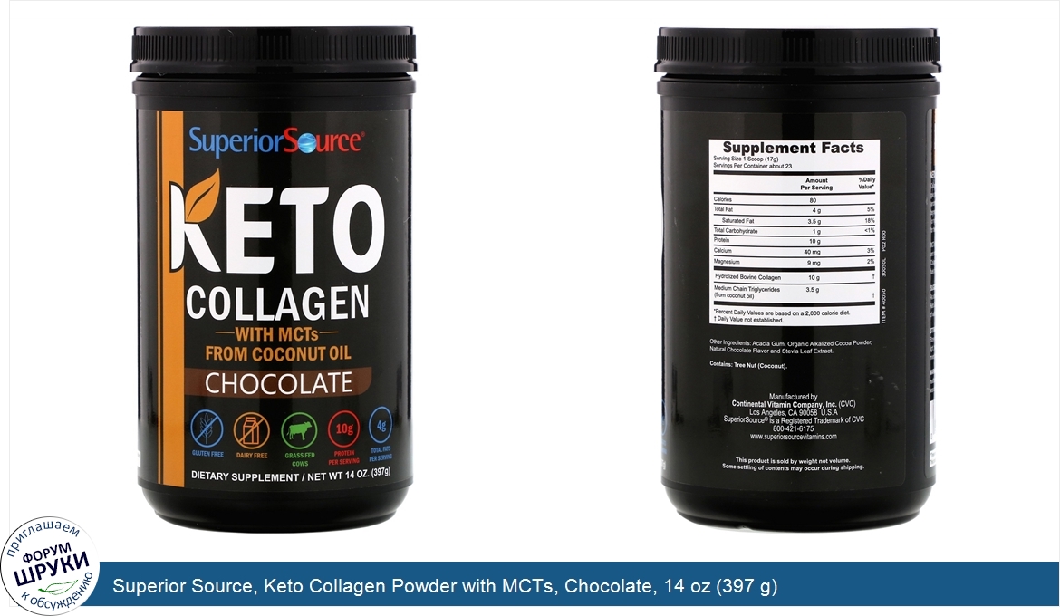 Друзья, если у вас есть отзыв/дополнение/комментарий/вопрос относительно Superior Source, Keto Collagen Powder with MCTs, Chocolate, 14 oz (397 g) - напишите его ответом в эту тему (это будет полезно всему сообществу в целом и вам в отдельности).
