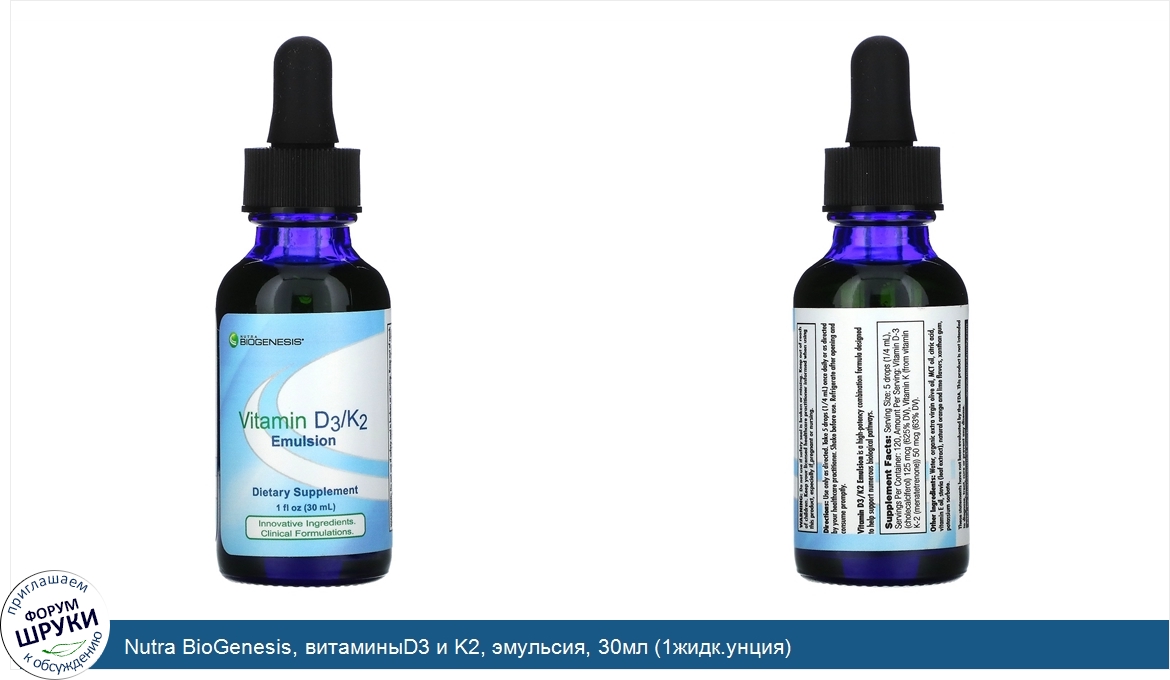 Nutra BioGenesis, витаминыD3 и K2, эмульсия, 30мл (1жидк.унция)