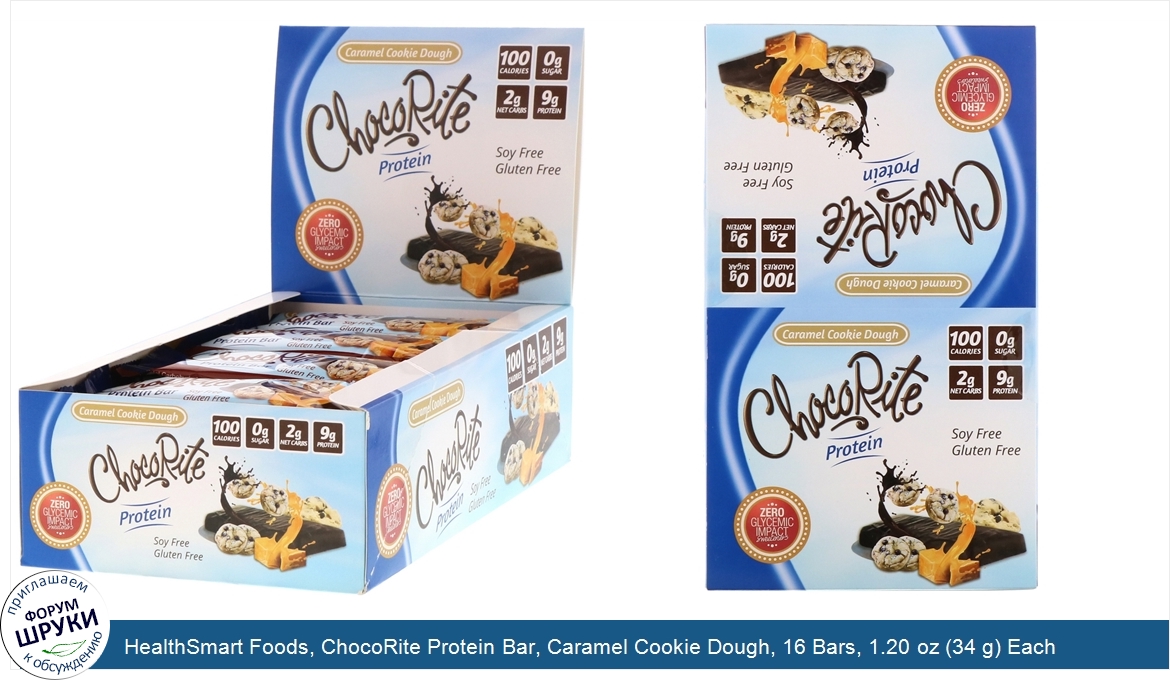 HealthSmart Foods, ChocoRite Protein Bar, Caramel Cookie Dough, 16 Bars, 1.20 oz (34 g) Each