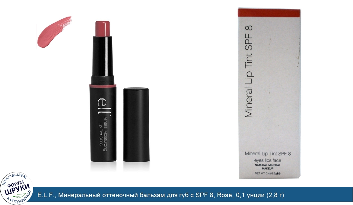 E.L.F., Минеральный оттеночный бальзам для губ с SPF 8, Rose, 0,1 унции (2,8 г)