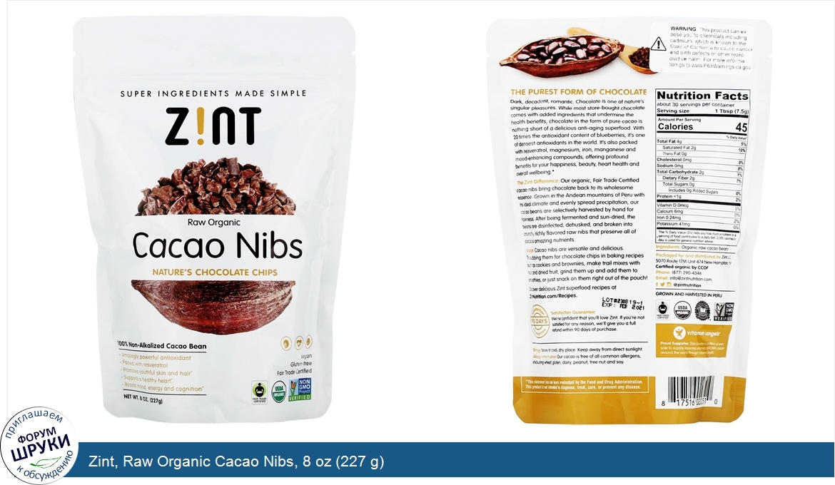 Друзья, если у вас есть отзыв/дополнение/комментарий/вопрос относительно Zint, Raw Organic Cacao Nibs, 8 oz (227 g) - напишите его ответом в эту тему (это будет полезно всему сообществу в целом и вам в отдельности).