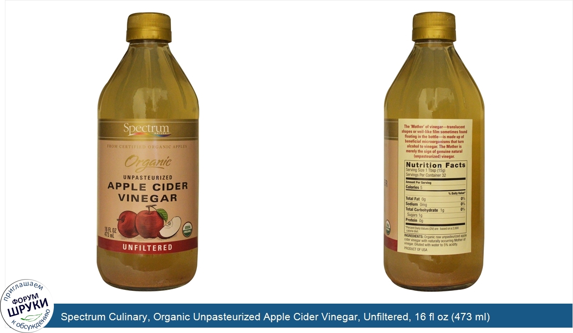 Друзья, если у вас есть отзыв/дополнение/комментарий/вопрос относительно Spectrum Culinary, Organic Unpasteurized Apple Cider Vinegar, Unfiltered, 16 fl oz (473 ml) - напишите его ответом в эту тему (это будет полезно всему сообществу в целом и вам в отдельности).