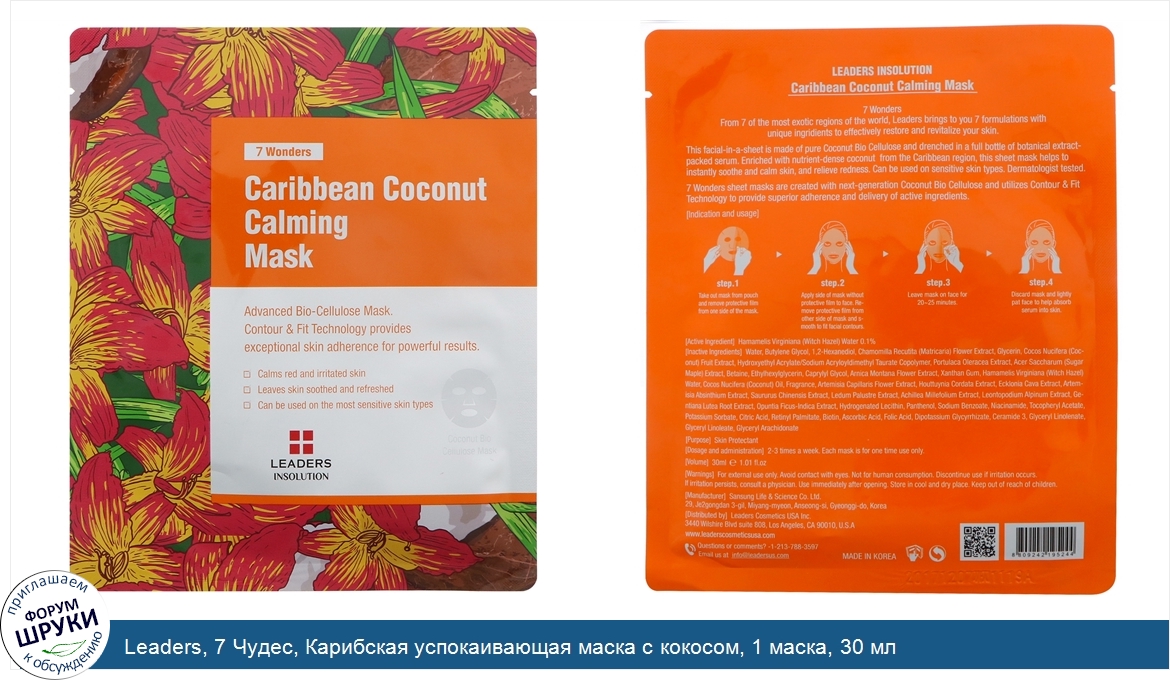 Друзья, если у вас есть отзыв/дополнение/комментарий/вопрос относительно Leaders, 7 Чудес, Карибская успокаивающая маска с кокосом, 1 маска, 30 мл - напишите его ответом в эту тему (это будет полезно всему сообществу в целом и вам в отдельности).