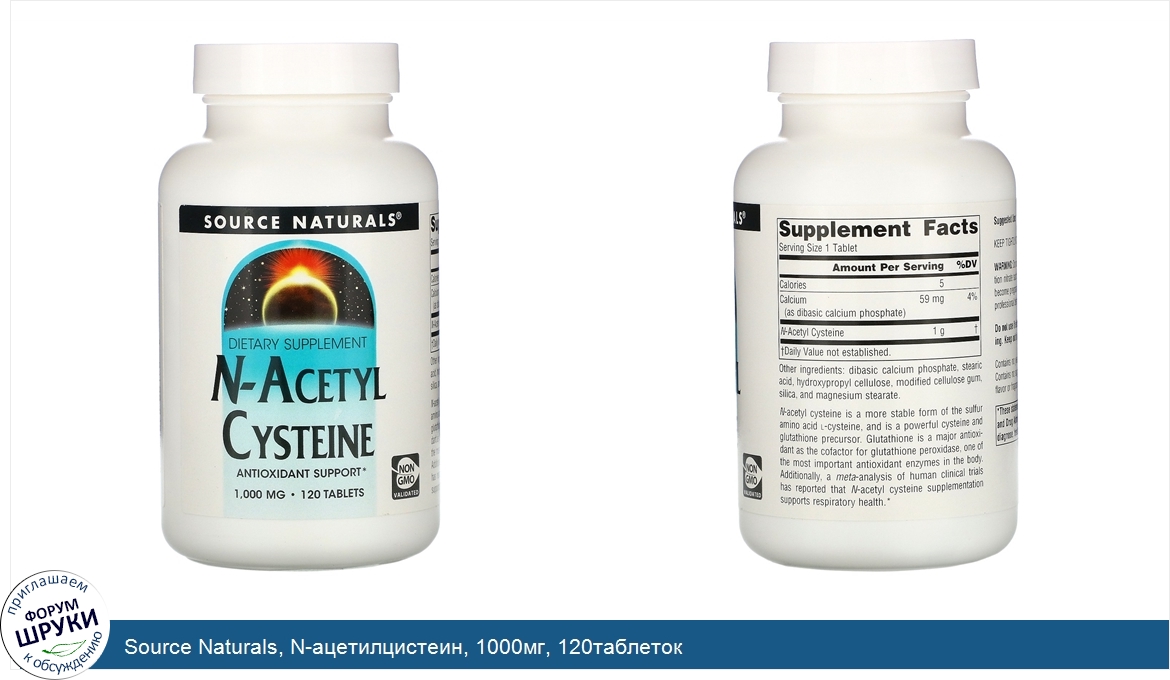 Категории: Source Naturals, Пищевые добавки, Антиоксиданты, N-ацетилцистеин, Сорс Начэралс, 1328