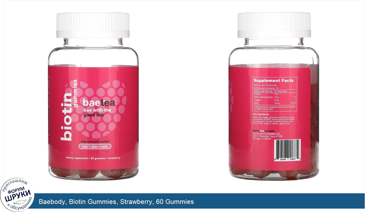 Друзья, если у вас есть отзыв/дополнение/комментарий/вопрос относительно Baebody, Biotin Gummies, Strawberry, 60 Gummies - напишите его ответом в эту тему (это будет полезно всему сообществу в целом и вам в отдельности).