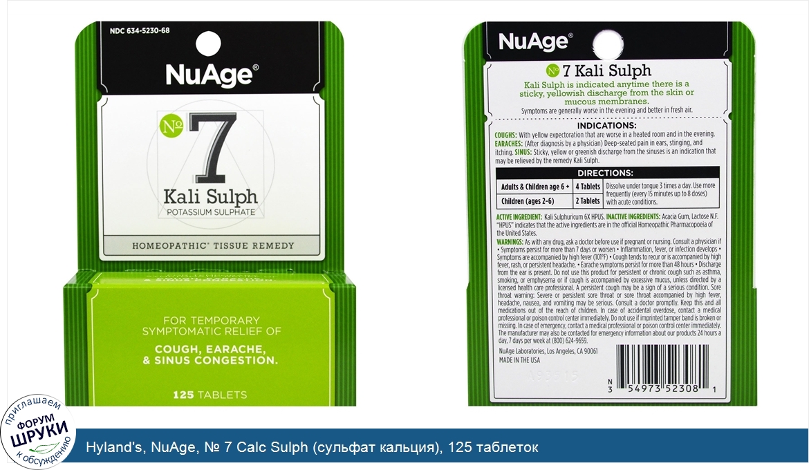 Друзья, если у вас есть отзыв/дополнение/комментарий/вопрос относительно Hyland's, NuAge, № 7 Calc Sulph (сульфат кальция), 125 таблеток - напишите его ответом в эту тему (это будет полезно всему сообществу в целом и вам в отдельности).