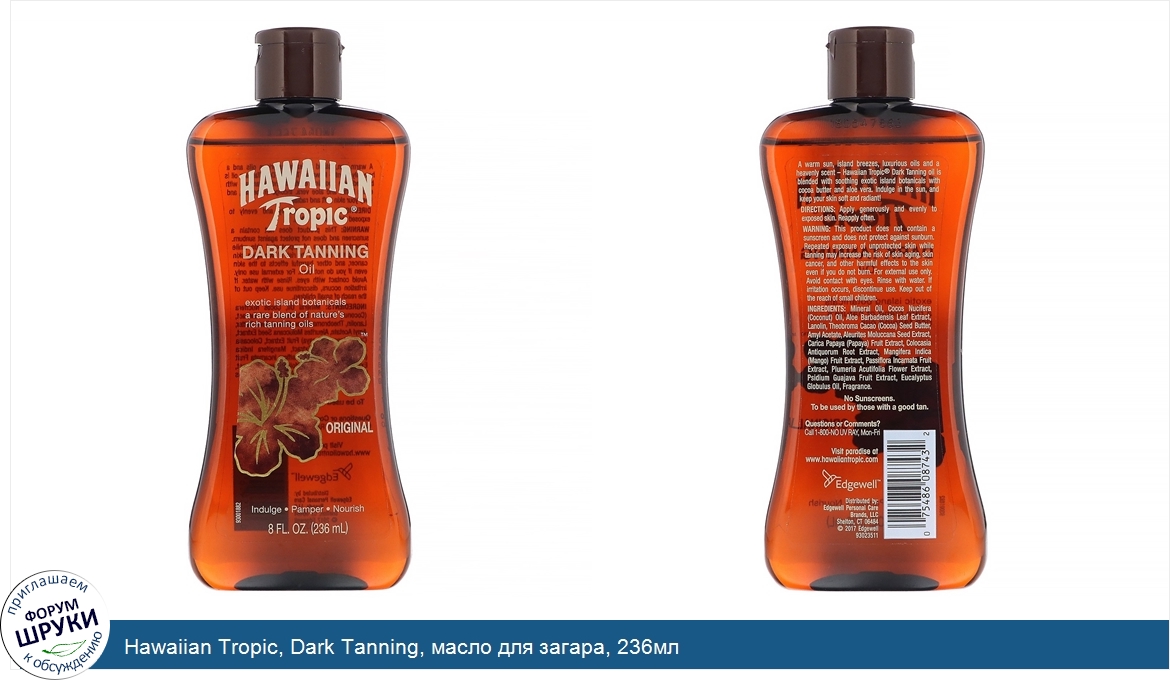 Друзья, если у вас есть отзыв/дополнение/комментарий/вопрос относительно Hawaiian Tropic, Dark Tanning, масло для загара, 236мл - напишите его ответом в эту тему (это будет полезно всему сообществу в целом и вам в отдельности).