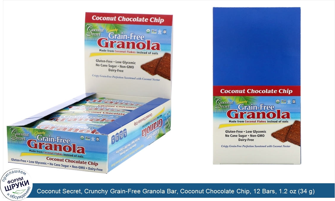 Друзья, если у вас есть отзыв/дополнение/комментарий/вопрос относительно Coconut Secret, Crunchy Grain-Free Granola Bar, Coconut Chocolate Chip, 12 Bars, 1.2 oz (34 g) Each - напишите его ответом в эту тему (это будет полезно всему сообществу в целом и вам в отдельности).