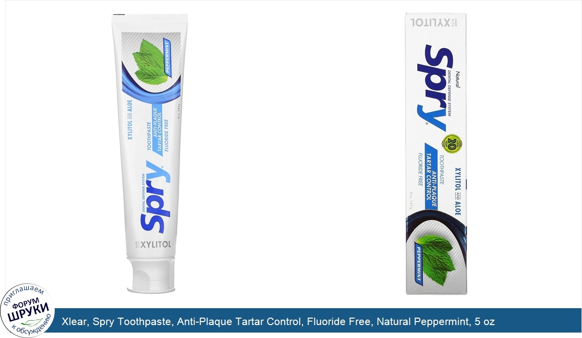 Xlear, Spry Toothpaste, Anti-Plaque Tartar Control, Fluoride Free, Natural Peppermint, 5 oz (141 g)