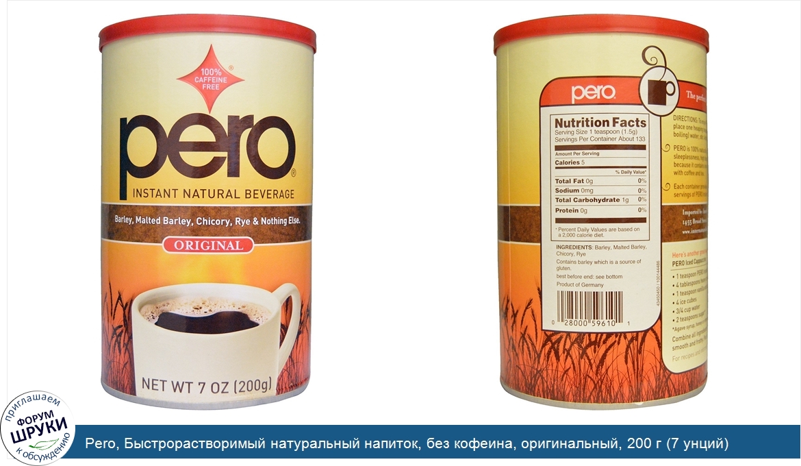 Друзья, если у вас есть отзыв/дополнение/комментарий/вопрос относительно Pero, Быстрорастворимый натуральный напиток, без кофеина, оригинальный, 200 г (7 унций) - напишите его ответом в эту тему (это будет полезно всему сообществу в целом и вам в отдельности).