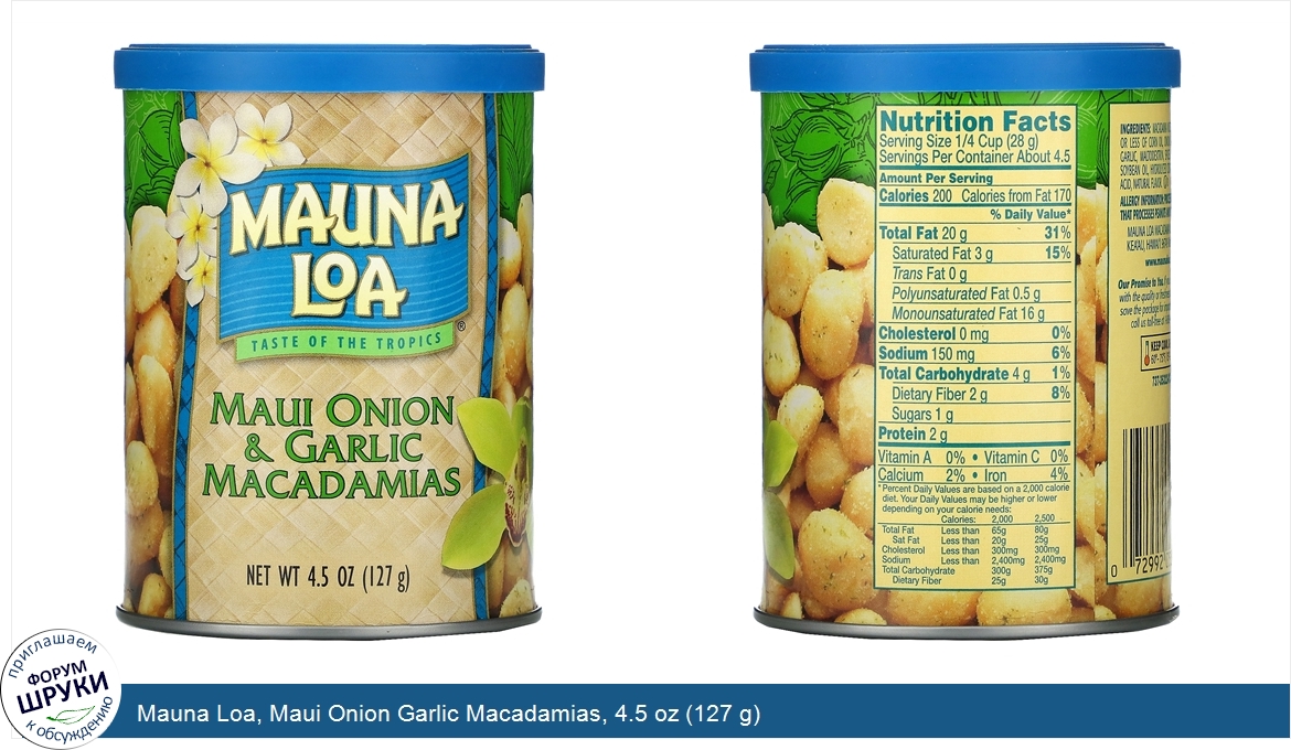 Mauna Loa, Maui Onion Garlic Macadamias, 4.5 oz (127 g)