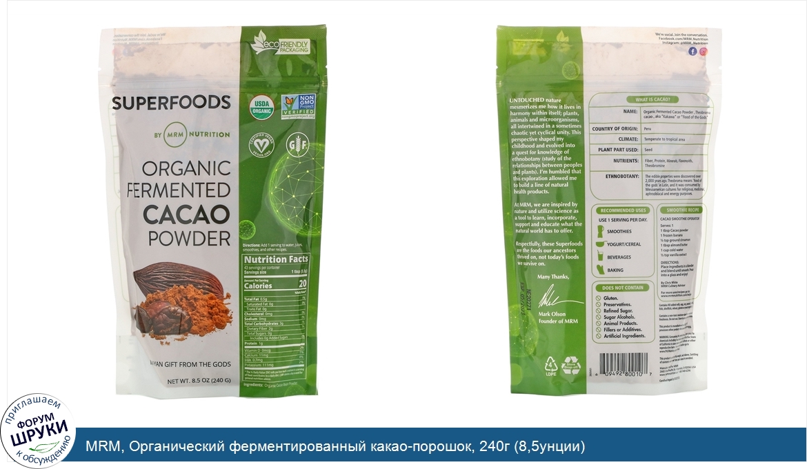 Друзья, если у вас есть отзыв/дополнение/комментарий/вопрос относительно MRM, Органический ферментированный какао-порошок, 240г (8,5унции) - напишите его ответом в эту тему (это будет полезно всему сообществу в целом и вам в отдельности).