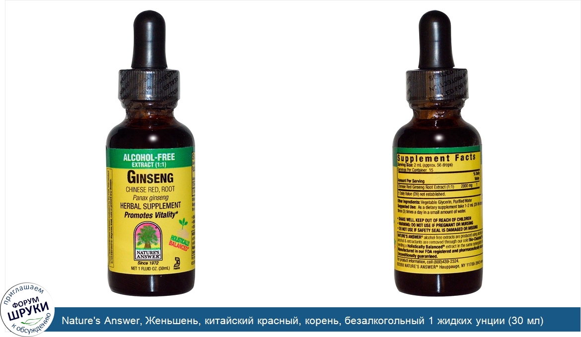 Друзья, если у вас есть отзыв/дополнение/комментарий/вопрос относительно Nature's Answer, Женьшень, китайский красный, корень, безалкогольный 1 жидких унции (30 мл) - напишите его ответом в эту тему (это будет полезно всему сообществу в целом и вам в отдельности).