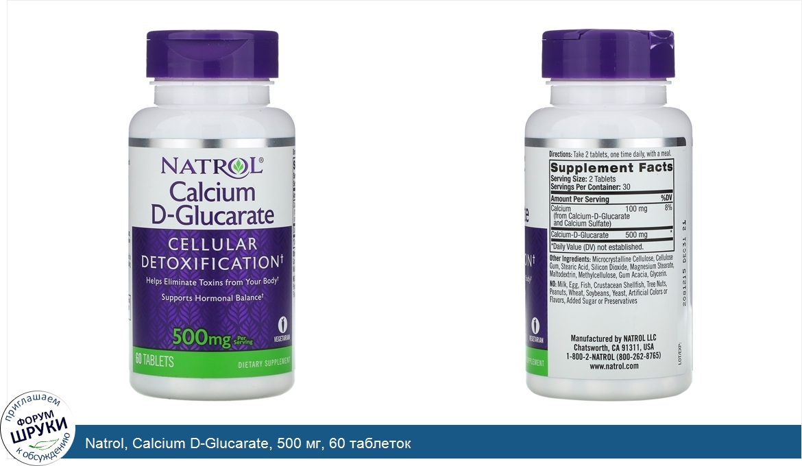 Natrol, Calcium D-Glucarate, 500 мг, 60 таблеток