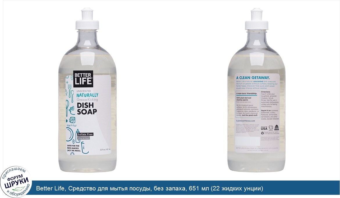 Друзья, если у вас есть отзыв/дополнение/комментарий/вопрос относительно Better Life, Средство для мытья посуды, без запаха, 651 мл (22 жидких унции) - напишите его ответом в эту тему (это будет полезно всему сообществу в целом и вам в отдельности).