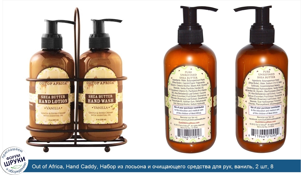Out of Africa, Hand Caddy, Набор из лосьона и очищающего средства для рук, ваниль, 2 шт, 8 унций (230 мл) каждый