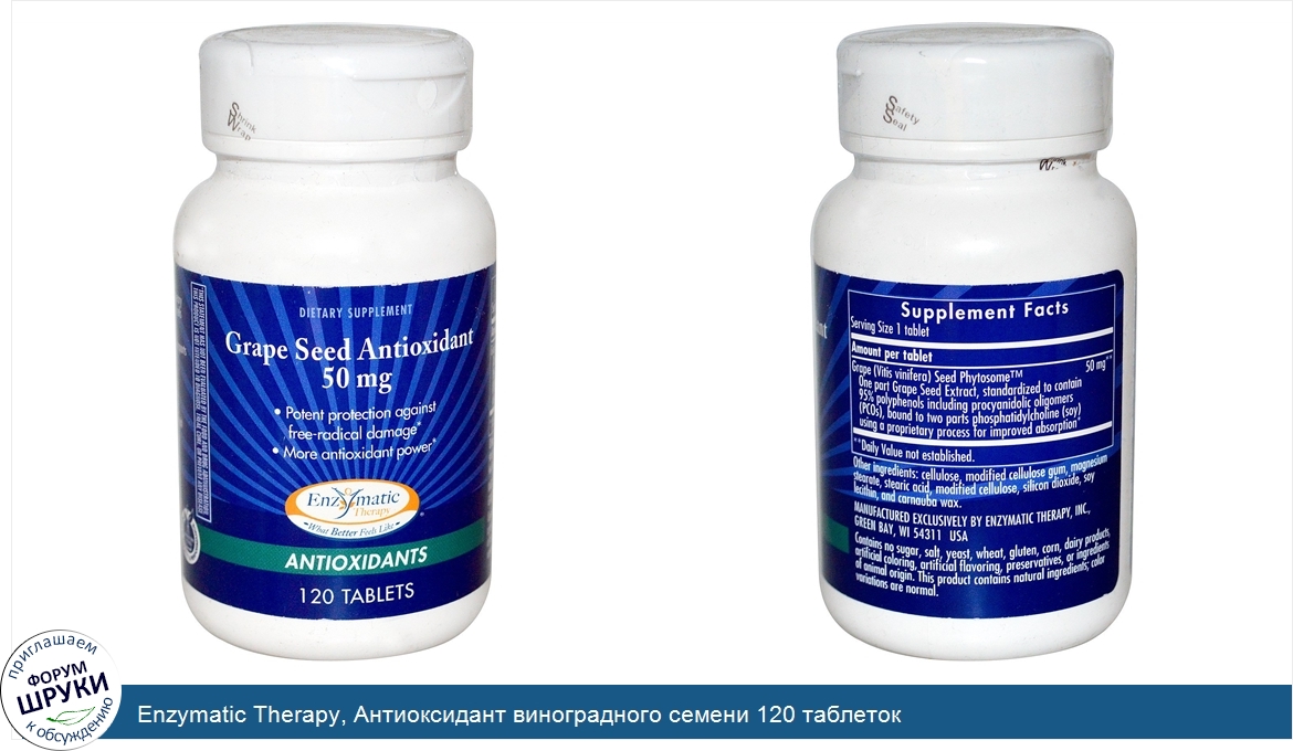 Друзья, если у вас есть отзыв/дополнение/комментарий/вопрос относительно Enzymatic Therapy, Антиоксидант виноградного семени 120 таблеток - напишите его ответом в эту тему (это будет полезно всему сообществу в целом и вам в отдельности).