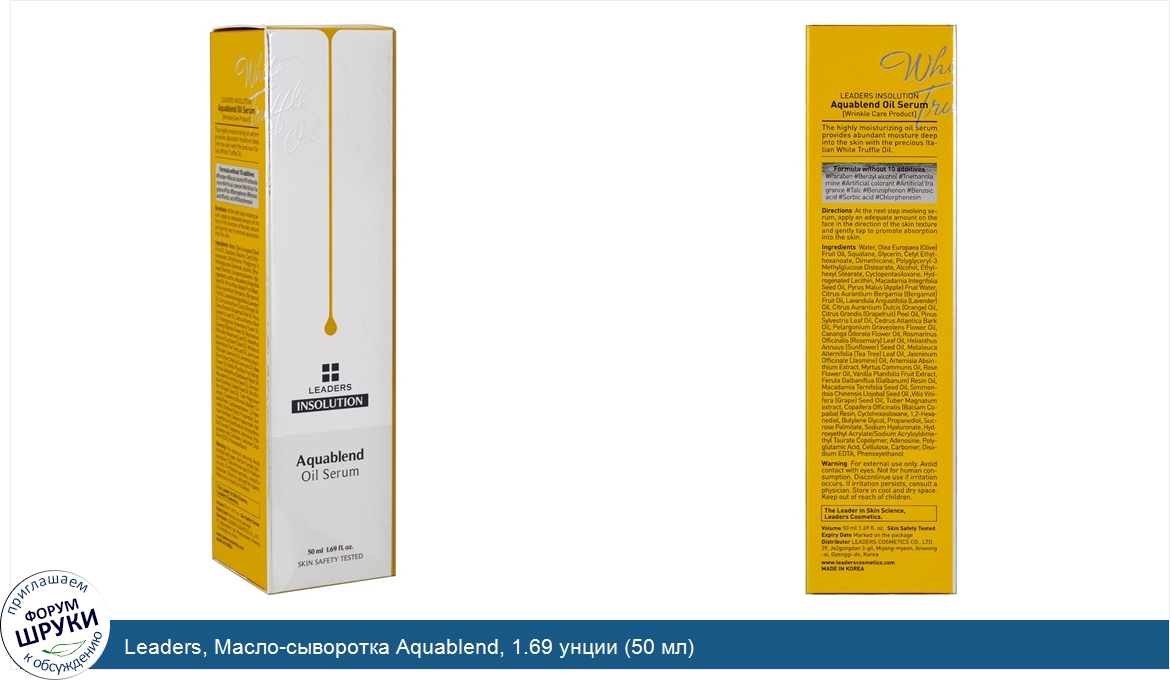 [DESCRIPT]White Truffle Oil. Leaders Insolution. Skin Safety Tested. Wrinkle Care Product. The highly moisturizing oil serum provides abundant moisture deep into the skin with the precious Italian White Truffle Oil. Formula without 10 additives. #Paraben #Benzyl alcohol #Triethanolamine #Artificial colorant #Artificial fragrance #Talc #Benzophenon #Benzoic acid #Sorbic acid #Chlorphensin.[/DESCRIPT]... (описание дополняется)