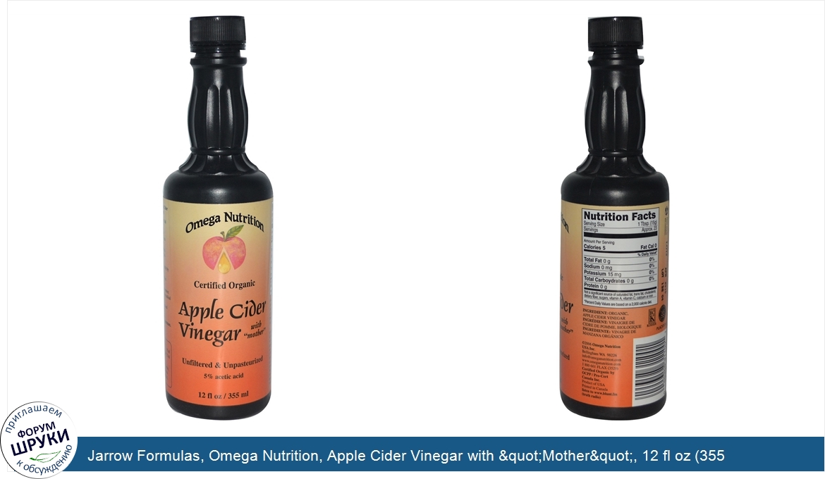 Jarrow Formulas, Omega Nutrition, Apple Cider Vinegar with "Mother", 12 fl oz (355 ml)