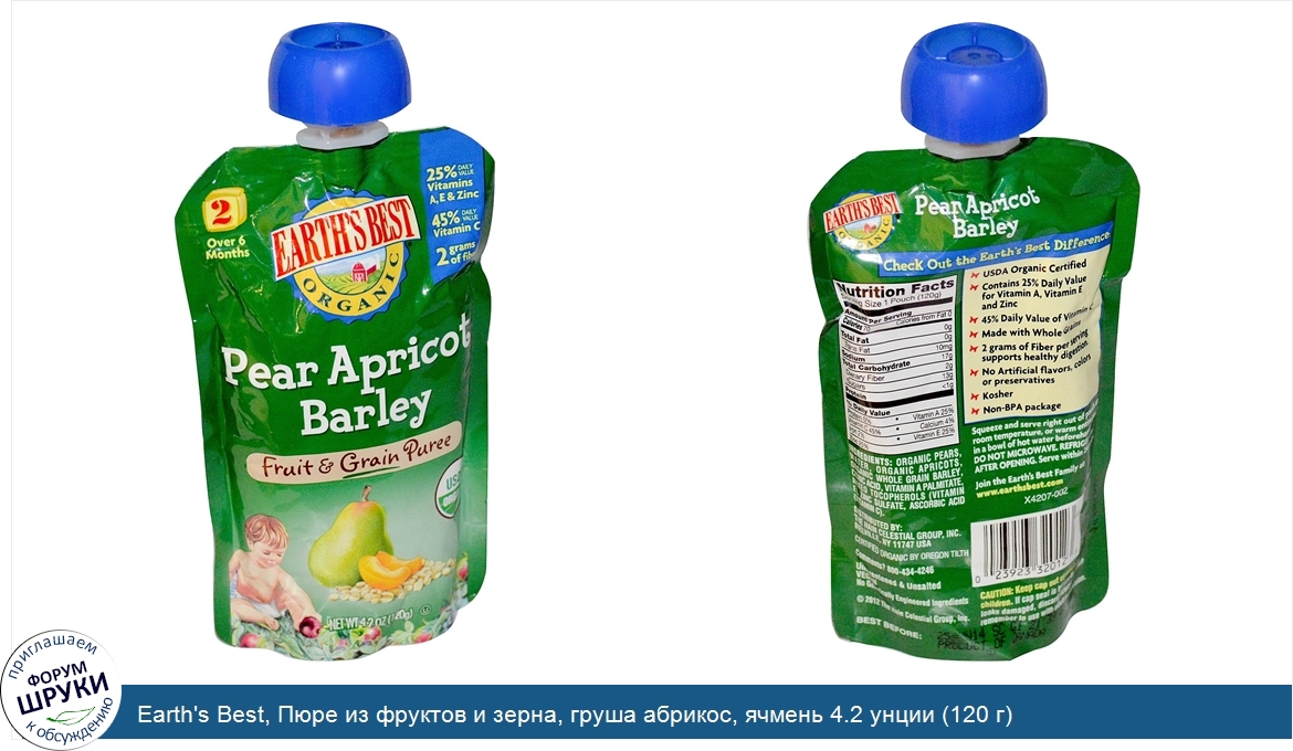 Друзья, если у вас есть отзыв/дополнение/комментарий/вопрос относительно Earth's Best, Пюре из фруктов и зерна, груша абрикос, ячмень 4.2 унции (120 г) - напишите его ответом в эту тему (это будет полезно всему сообществу в целом и вам в отдельности).