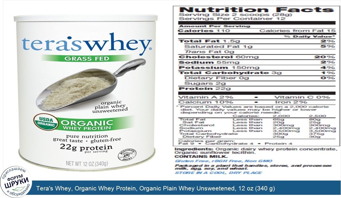 Друзья, если у вас есть отзыв/дополнение/комментарий/вопрос относительно Tera's Whey, Organic Whey Protein, Organic Plain Whey Unsweetened, 12 oz (340 g) - напишите его ответом в эту тему (это будет полезно всему сообществу в целом и вам в отдельности).