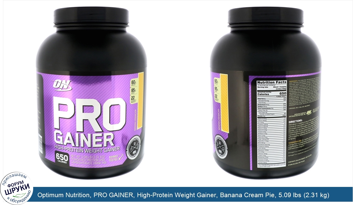 Друзья, если у вас есть отзыв/дополнение/комментарий/вопрос относительно Optimum Nutrition, PRO GAINER, High-Protein Weight Gainer, Banana Cream Pie, 5.09 lbs (2.31 kg) - напишите его ответом в эту тему (это будет полезно всему сообществу в целом и вам в отдельности).