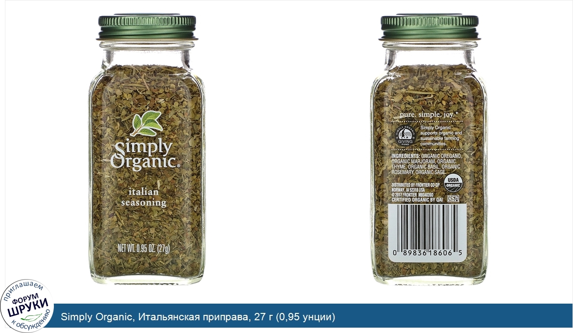 Simply Organic, Итальянская приправа, 27 г (0,95 унции)