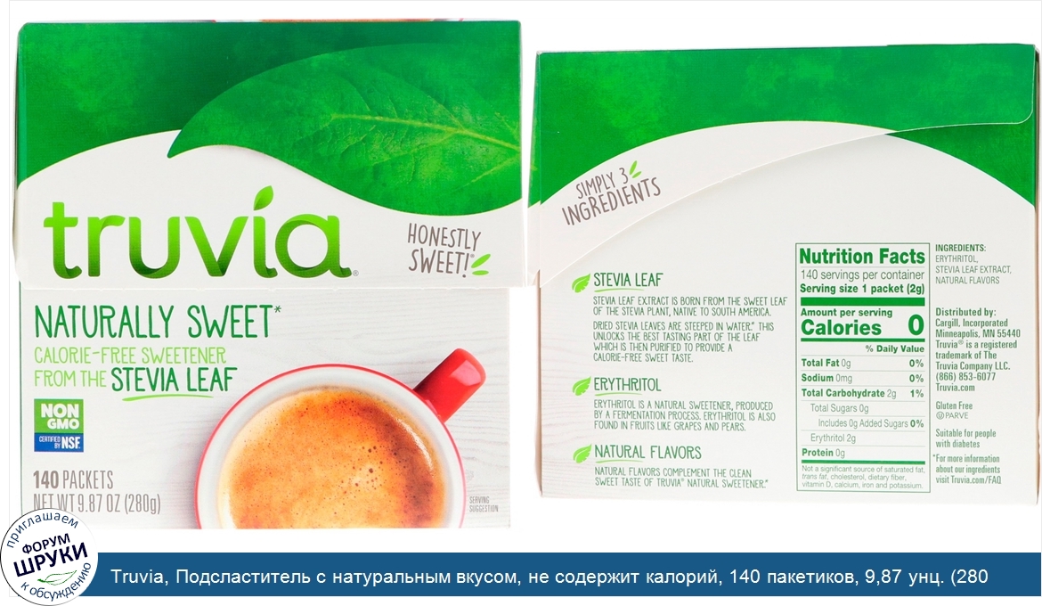 Друзья, если у вас есть отзыв/дополнение/комментарий/вопрос относительно Truvia, Подсластитель с натуральным вкусом, не содержит калорий, 140 пакетиков, 9,87 унц. (280 г) - напишите его ответом в эту тему (это будет полезно всему сообществу в целом и вам в отдельности).