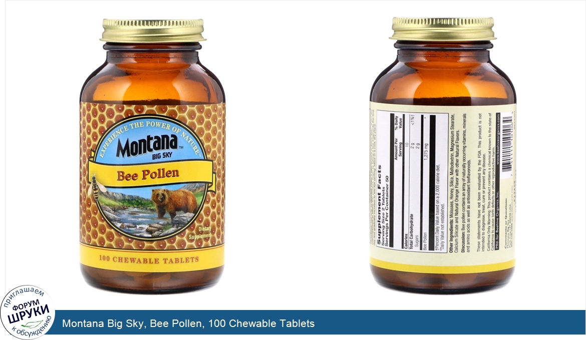 Друзья, если у вас есть отзыв/дополнение/комментарий/вопрос относительно Montana Big Sky, Bee Pollen, 100 Chewable Tablets - напишите его ответом в эту тему (это будет полезно всему сообществу в целом и вам в отдельности).