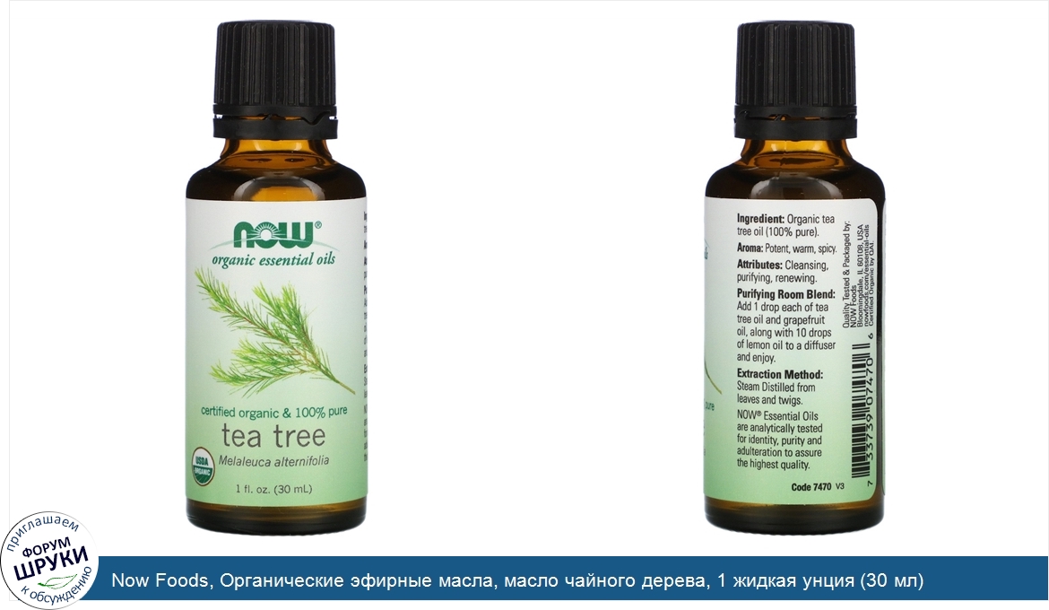 ru Now Foods, Органические эфирные масла, масло чайного дерева, 1 жидкая унция (30 мл)