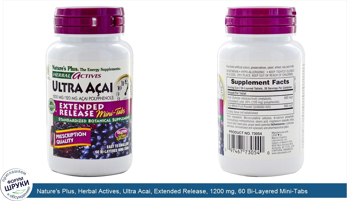 Nature's Plus, Herbal Actives, Ultra Acai, Extended Release, 1200 mg, 60 Bi-Layered Mini-Tabs