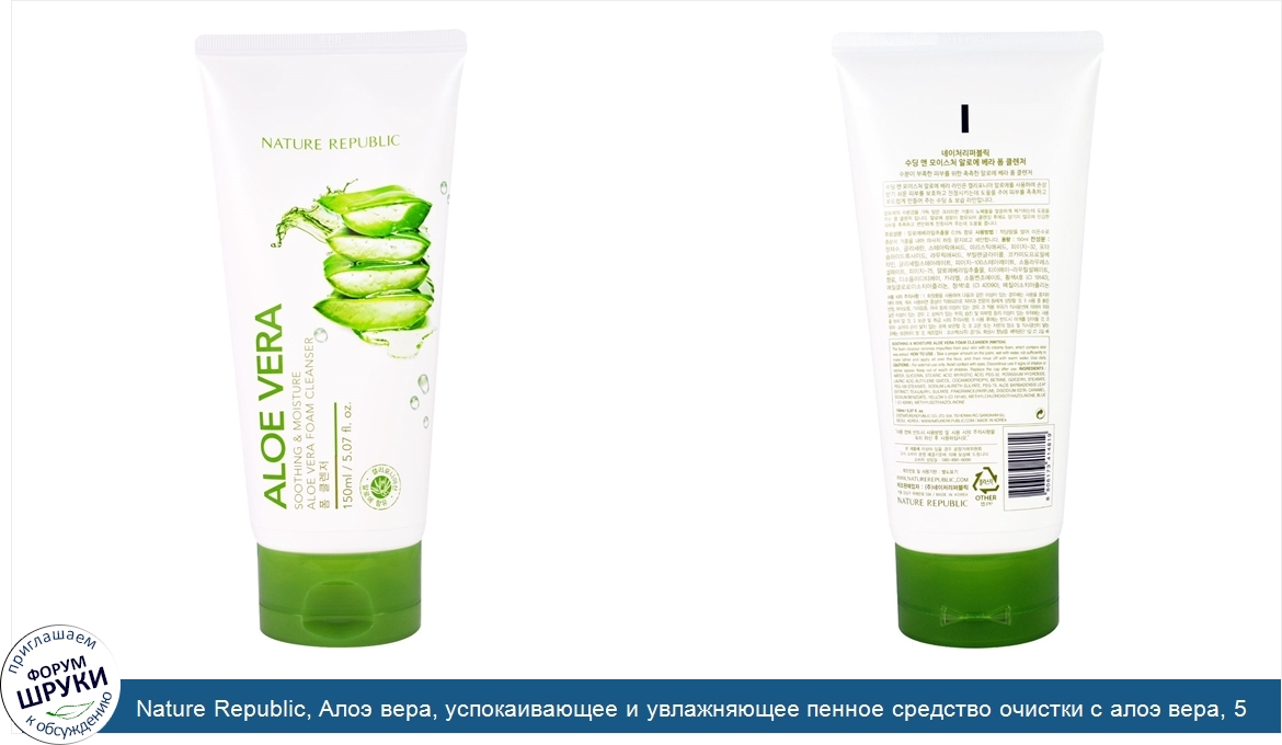 ru Nature Republic, Алоэ вера, успокаивающее и увлажняющее пенное средство очистки с алоэ вера, 5,07 жидких унций (150 мл)