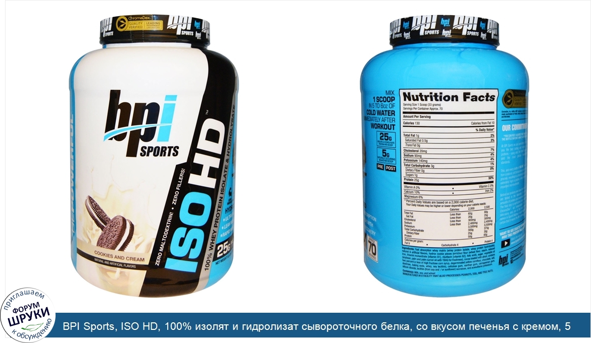 Друзья, если у вас есть отзыв/дополнение/комментарий/вопрос относительно BPI Sports, ISO HD, 100% изолят и гидролизат сывороточного белка, со вкусом печенья с кремом, 5,0 фунтов (2285 г) - напишите его ответом в эту тему (это будет полезно всему сообществу в целом и вам в отдельности).