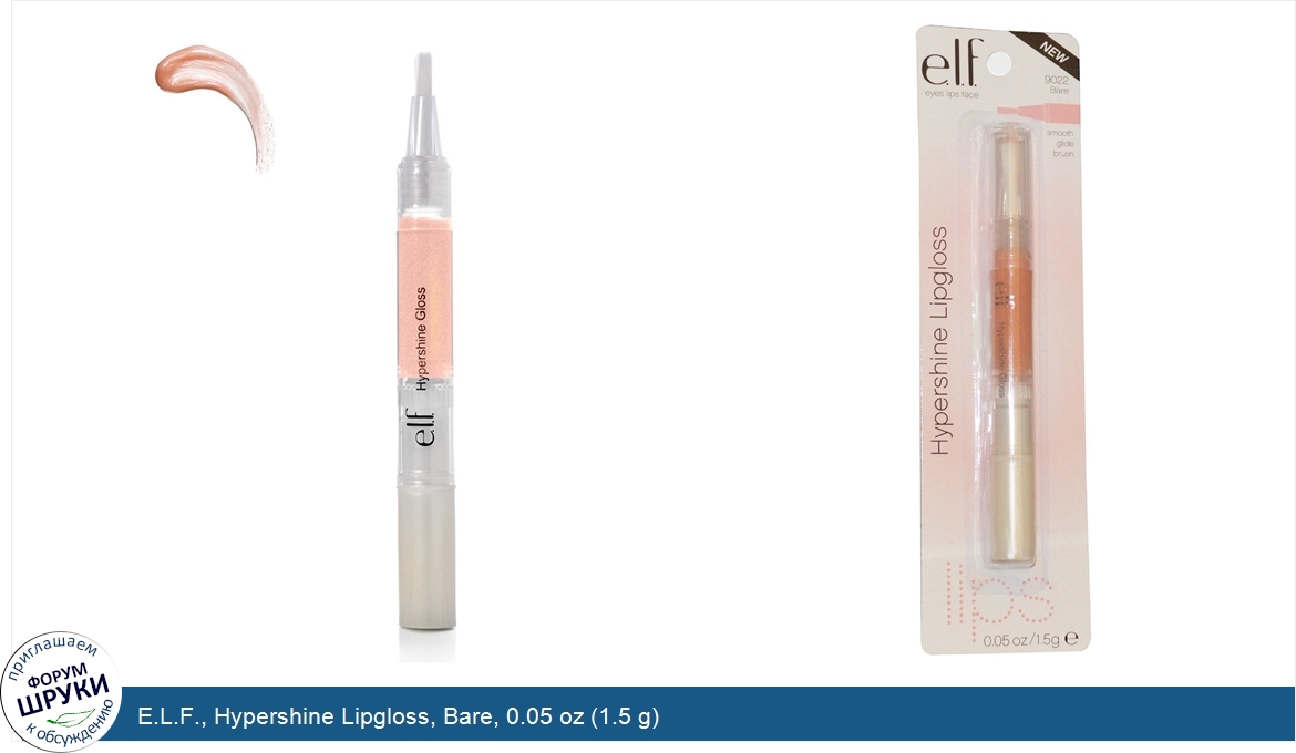 ru E.L.F., Hypershine Lipgloss, Bare, 0.05 oz (1.5 g)